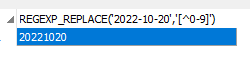 SELECT REGEXP_REPLACE('2022-10-20', '[^0-9]')