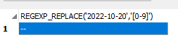 SELECT REGEXP_REPLACE('2022-10-20', '[0-9]')